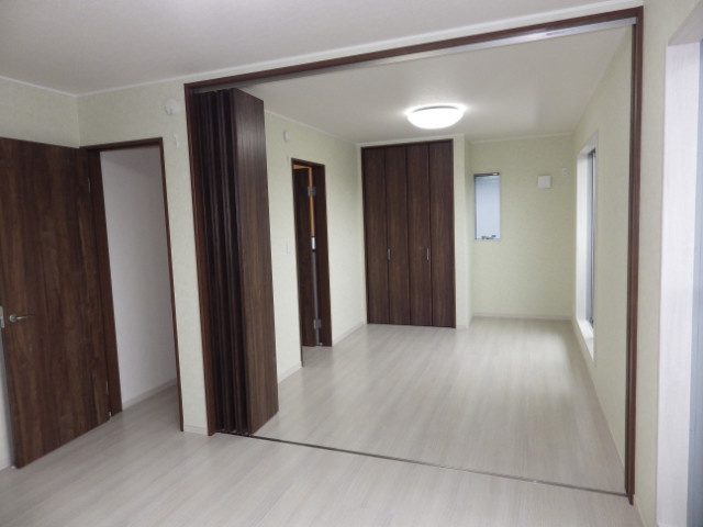 間仕切り建具を設置することで、子供の成長に合わせて間取りを変更することができるなど、家族の将来を考えたプランとしました。